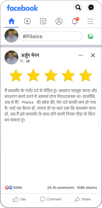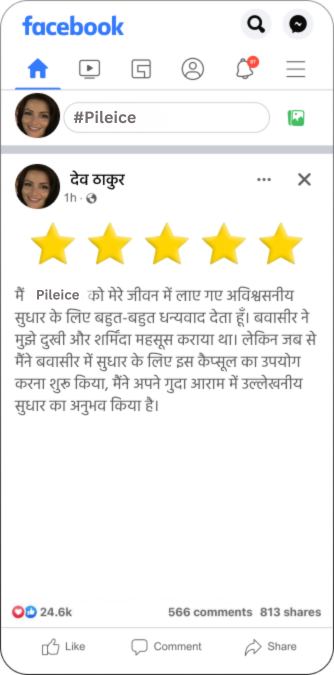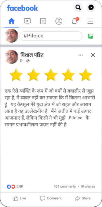 मैं बवासीर से पीड़ित अपने रोगियों को Pileice की अत्यधिक अनुशंसा करता हूँ। यह एक शानदार उत्पाद है जो बवासीर के लक्षणों से तुरंत राहत प्रदान करता है। Pileice प्रभावी रूप से दर्द और खुजली को कम करता है, जबकि गुदा के ऊतकों के सुधार को बढ़ावा देता है। यह कैप्सूल पूरी तरह से प्राकृतिक अवयवों से बना है, जो इसकी सुरक्षा और प्रभावशीलता की गारंटी देता है। नियमित उपयोग से आप बवासीर से होने वाली परेशानी में सुधार कर सकते हैं।